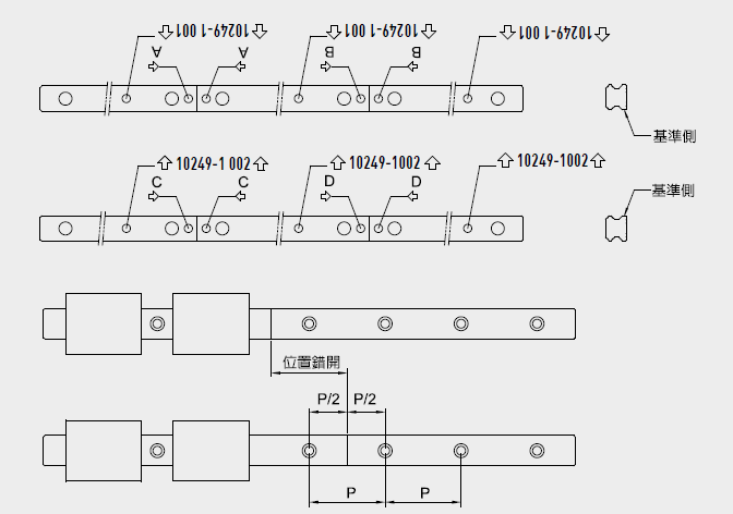導軌接牙安裝時必須依照導軌上標示順序安裝,以確保直線導軌精度;且建議配對之導軌接牙位置最好能錯開,